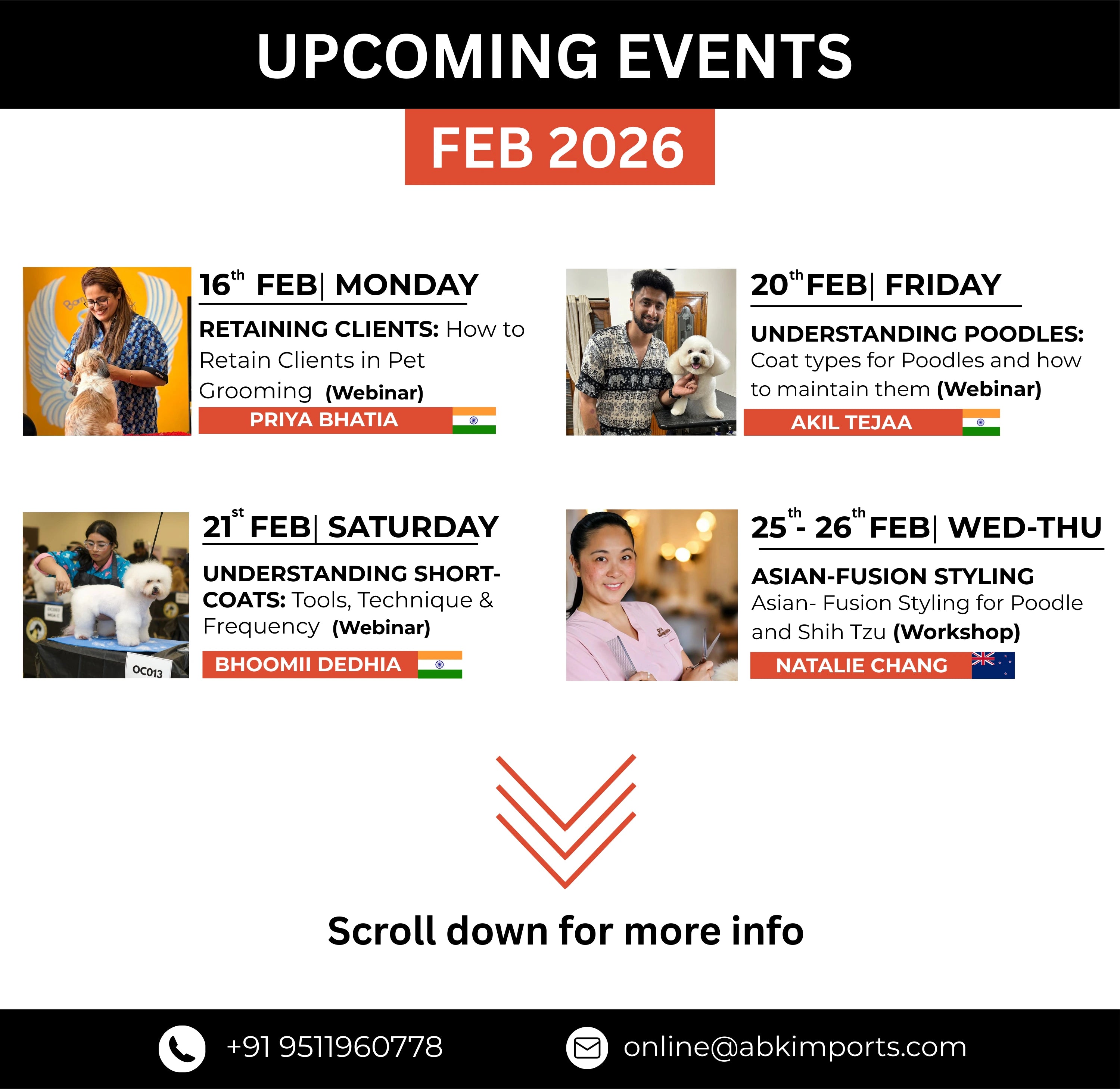 Join our grooming events to learn, grow, and perfect your craft! Led by top experts, these sessions are all about hands-on skills and pro secrets.